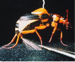 The beetle can aim this chemical burst with precision, firing in different directions depending on where the threat comes from.